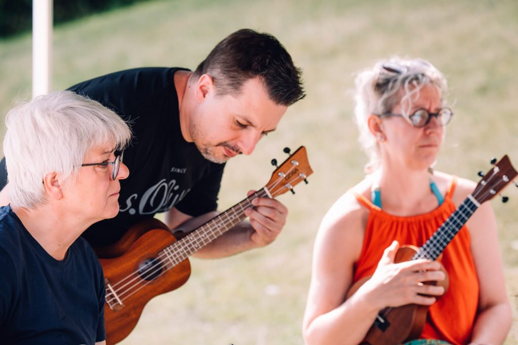 Am Ende des Workshops spielst du gemeinsam mit der Gruppe deine ersten Songs auf der Ukulele – ein Moment, den alle Teilnehmer sofort lieben.